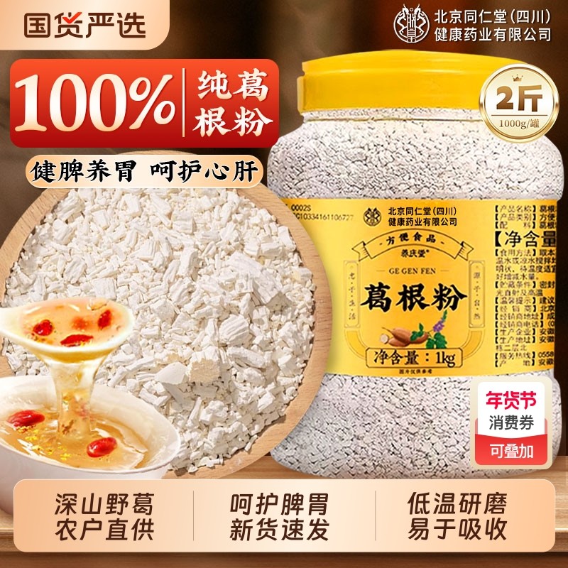 北京同仁堂葛根粉天然野生葛粉正品旗舰店无糖冲饮即食代餐柴葛粉
