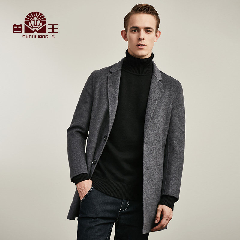 兽王新款中长款毛呢大衣韩版修身羊毛大衣男士双面尼冬季呢子外套