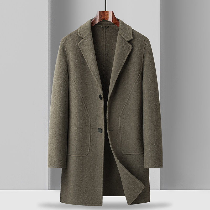 高端男士大衣外套2025新款羊毛绒呢子风衣中长款秋冬季加厚双面尼