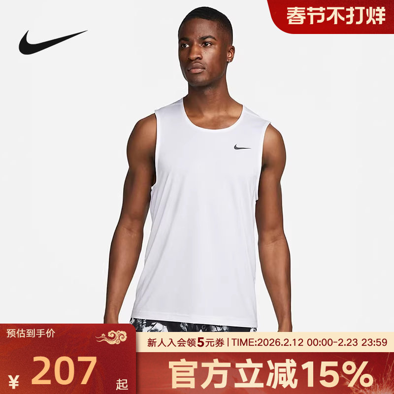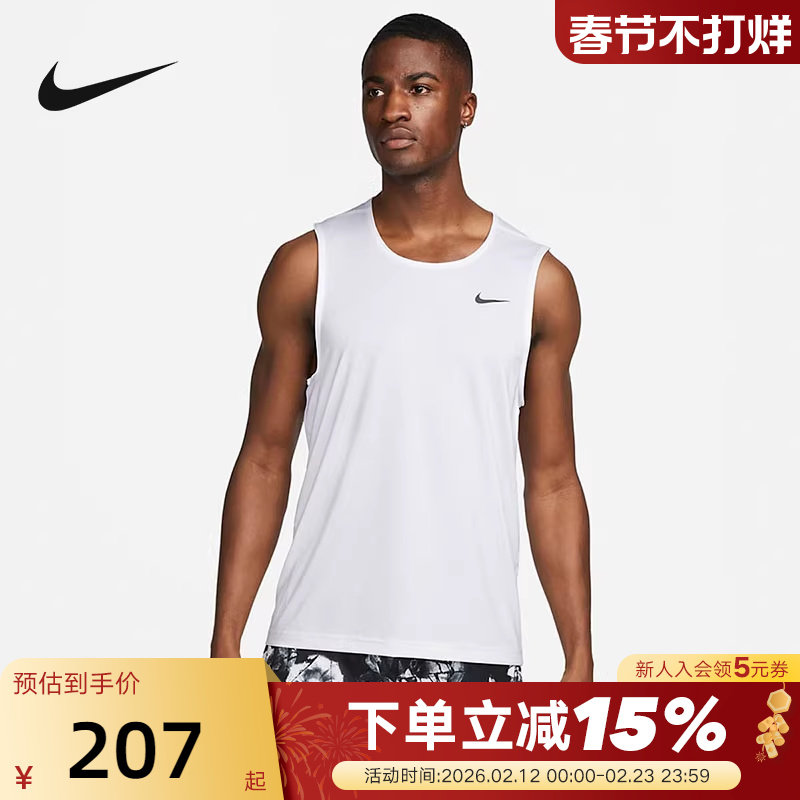 【自营】NIKE耐克男子速干训练白色休闲舒适运动背心DV9814-100