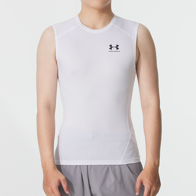 UA安德玛男子训练背心男子白色透气紧身衣健身跑步运动服无袖T恤