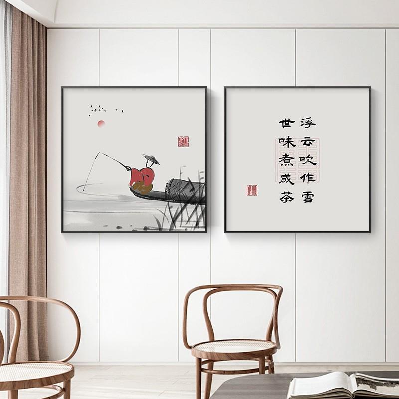 新中式禅意书法字画茶室氛围布置挂画书房背景墙面壁画茶楼装饰画