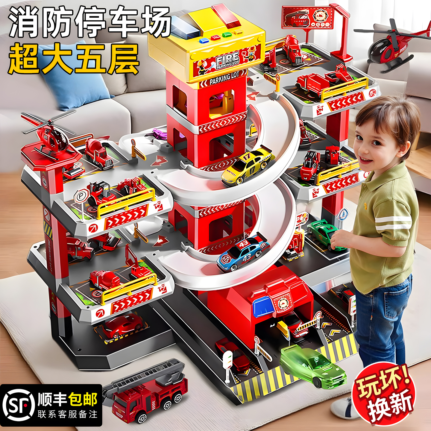 轨道车停车场大楼玩具车小汽车车库消防3-4岁儿童6益智工程车礼物