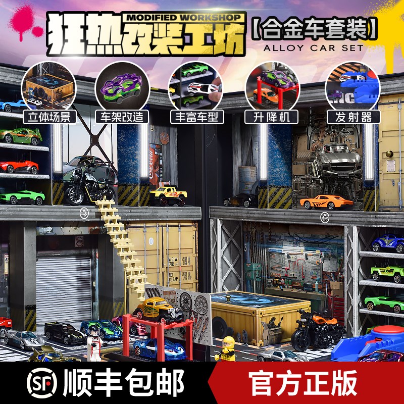 2025新款改装合金小汽车套装者凯卡儿童男孩玩具车停车场修理厂西