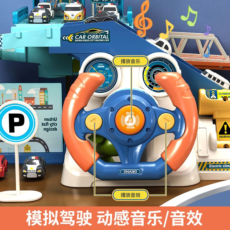 儿童方向盘汽车大楼轨道玩具车停车场滑行益智男孩闯关大冒险3岁6