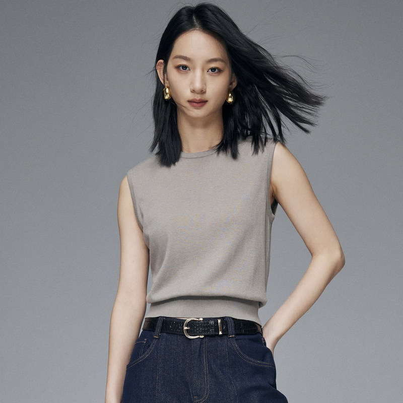 帕罗60支精纺秋冬圆领针织毛衣内搭宽松羊毛套头女打底吊带背心