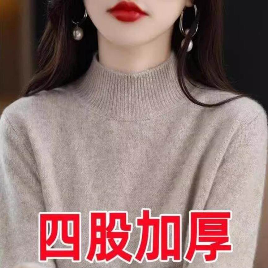 2025针织衫女秋冬新款套头半高领毛衣羊毛修身内搭纯色打底衫加厚