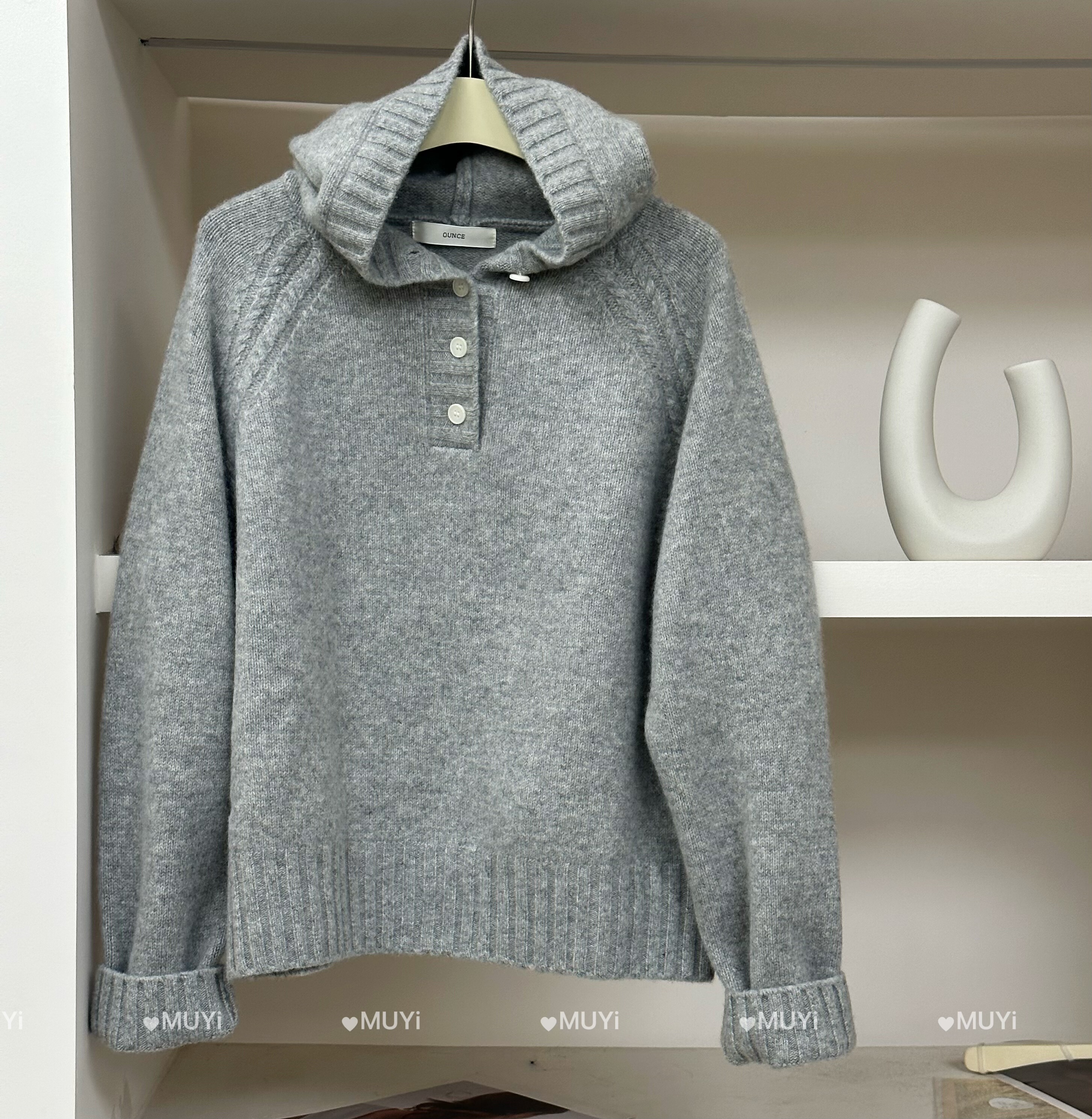MUYi韩系2025冬季新款连帽羊毛套头女洋气插肩袖毛衣外套上衣