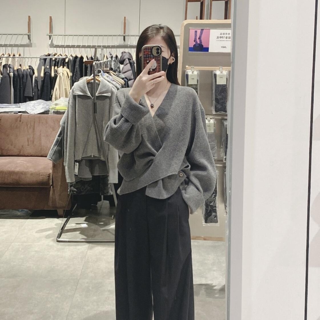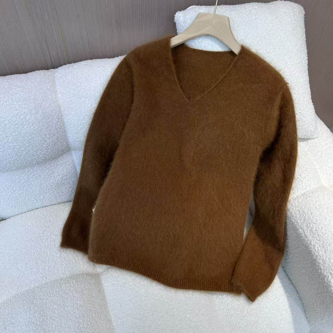 羊毛衫女2024秋冬新款V领毛衣宽松套头长袖羊绒大码针织打底衫