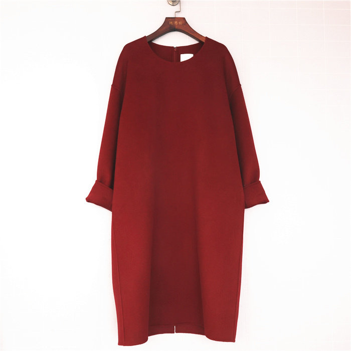 鸿思格HSG1125款简约圆领宽松双面手工艺缝制羊绒羊毛套头女外套