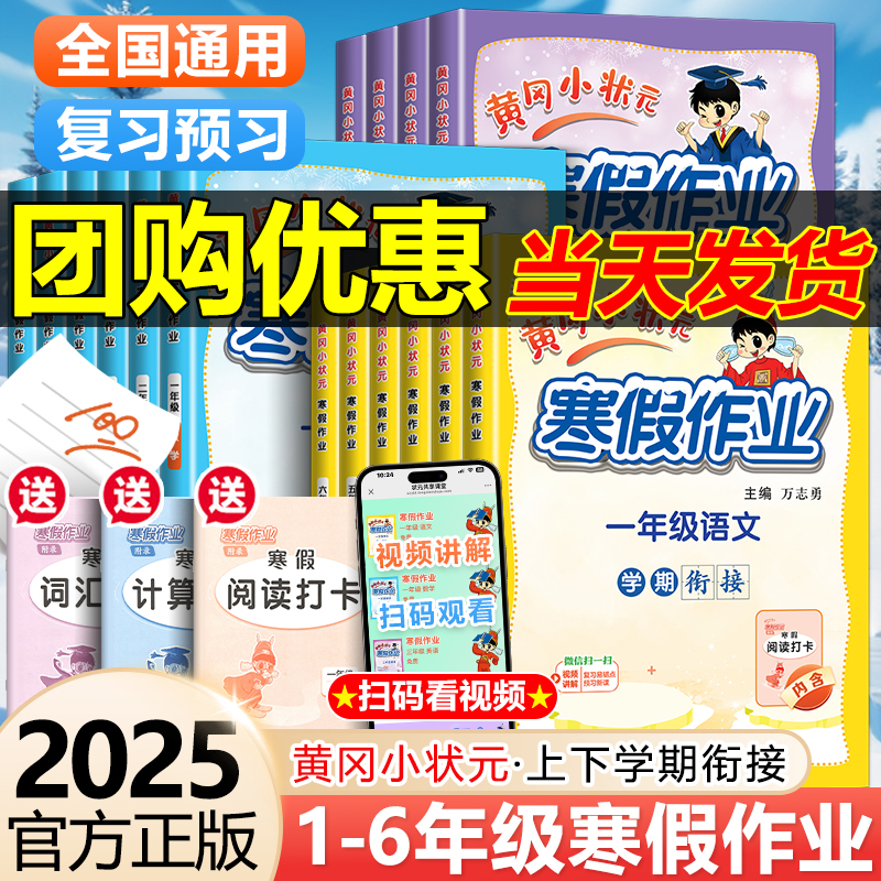 黄冈小状元寒假作业一年级二年级三四五六年级上下册语文数学英语人教版北师版上下学期寒假衔接小学复习同步练习册广东专版作业本