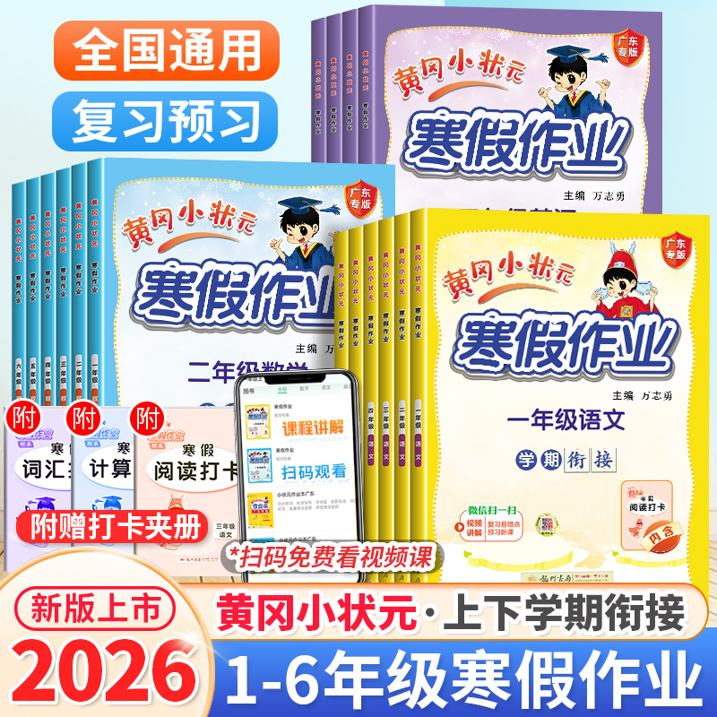 2026春黄冈小状元寒假作业一年级二年级三四五六年级上册下册语文数学英语人教版北师版 小学寒假衔接上下学期预习复习练习册广东