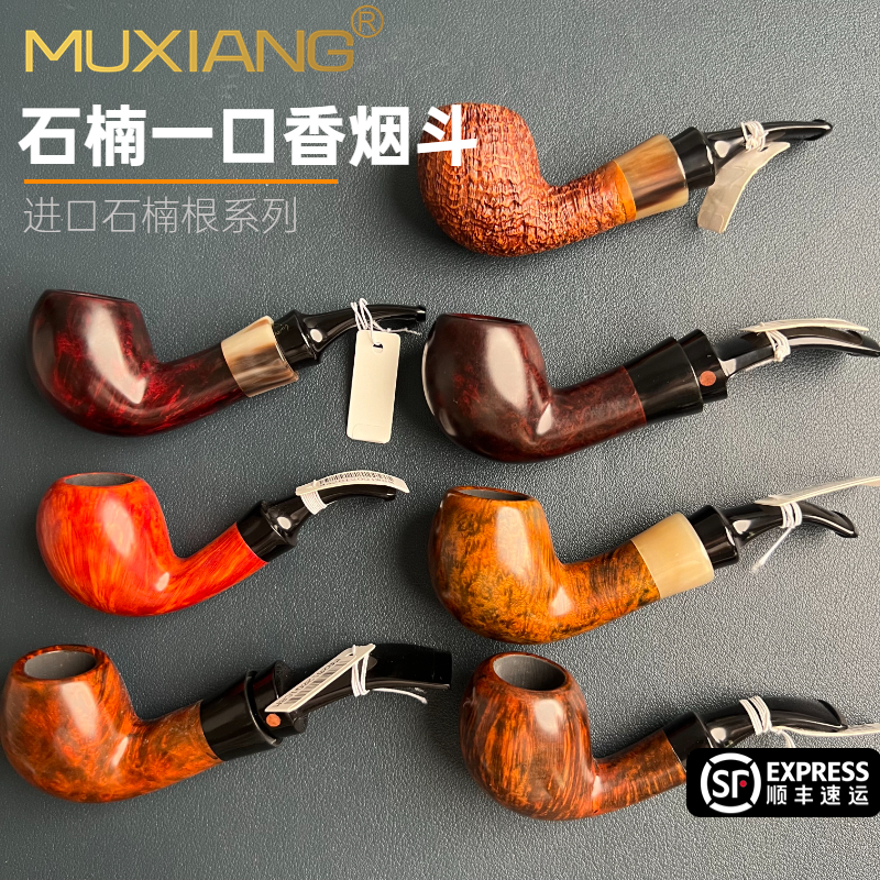 石楠木烟斗直式手工传统老式牛头斗高档实木旱烟斗便携迷你烟袋锅