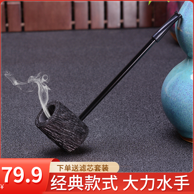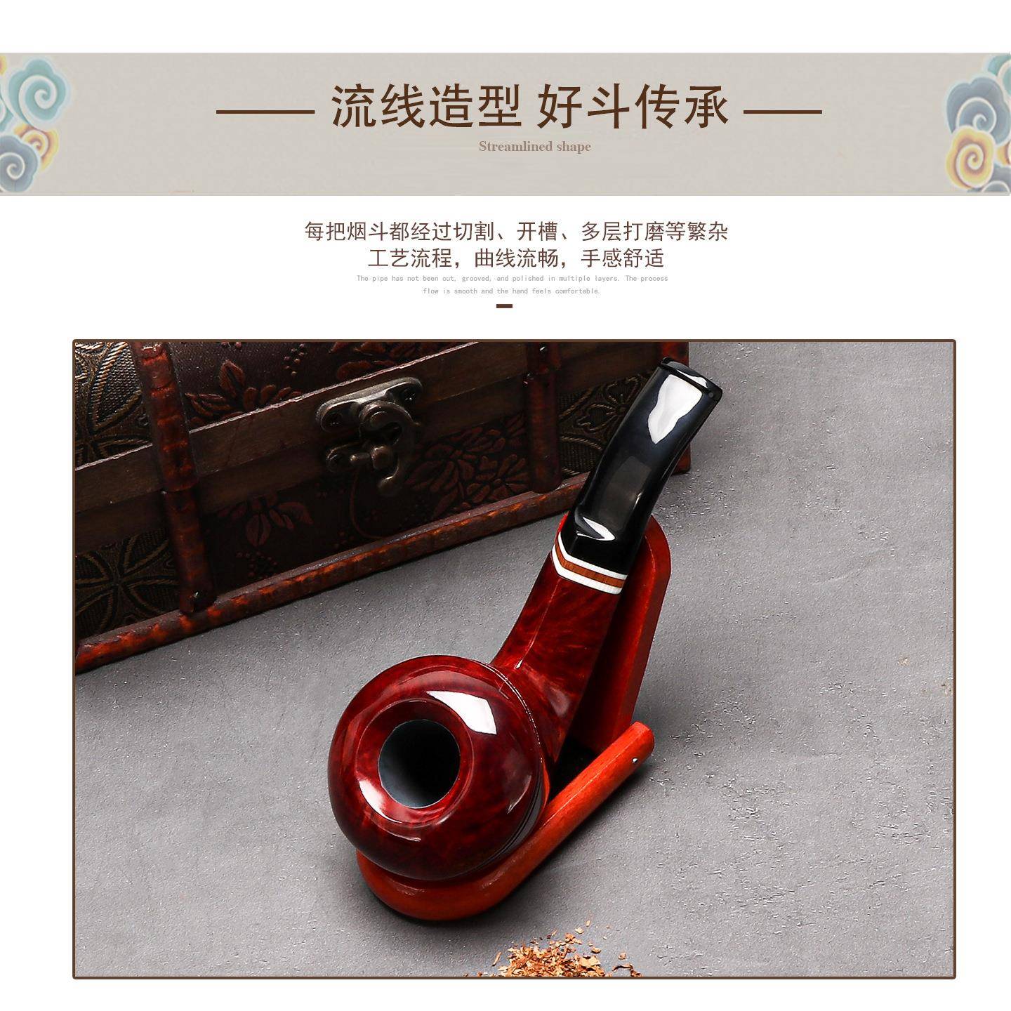 号角款石楠木烟斗便携式小斗烟丝斗旱烟斗9MM活性炭滤芯过滤烟斗