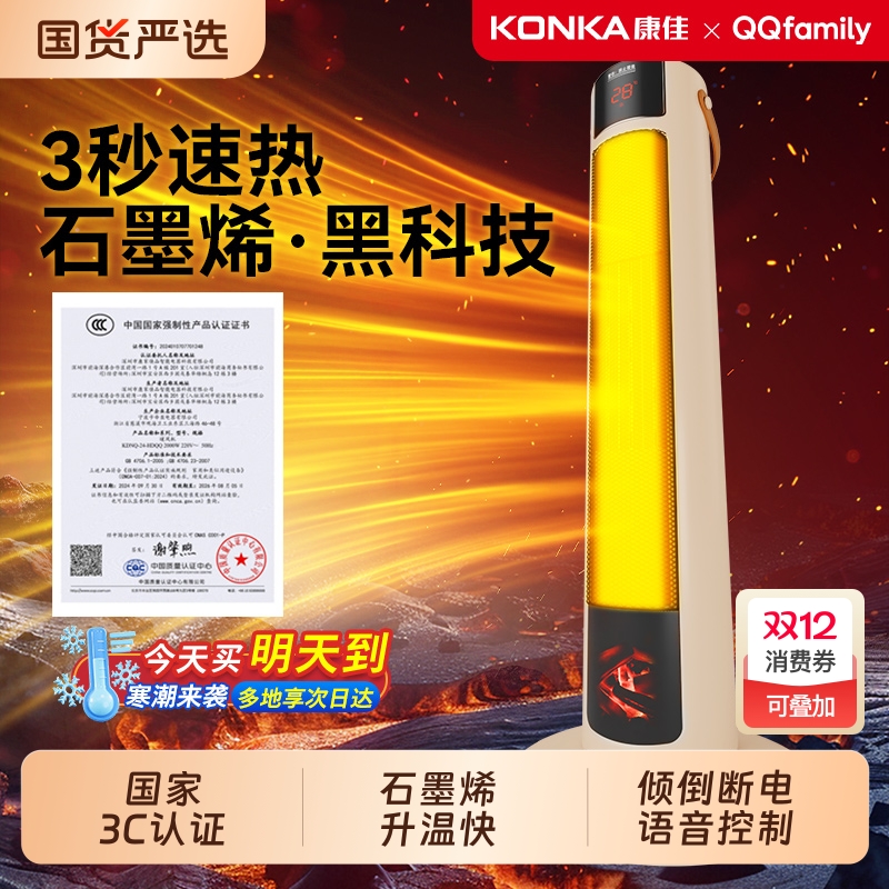 康佳暖风机取暖器家用石墨烯电暖气炉节能小太阳2025新款冬季电热