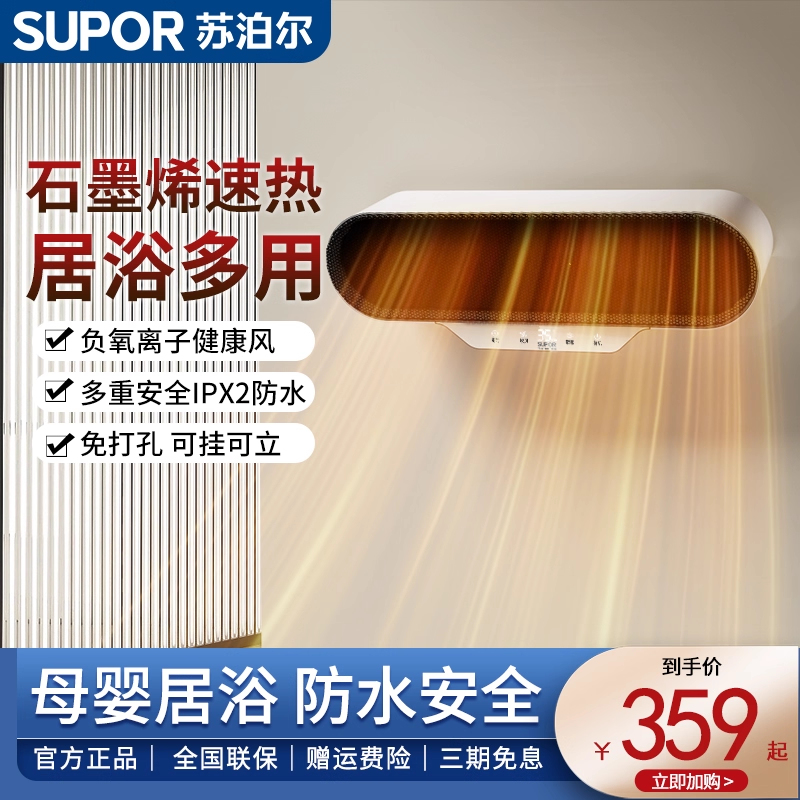 美的暖风机浴室取暖器家用石墨烯卫生间洗澡浴霸电暖器壁挂小太阳