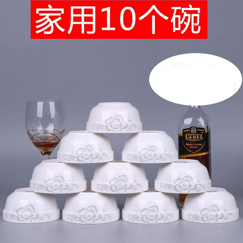 10个碗 4.5英寸家用中式吃饭碗 米饭碗陶瓷碗 小汤碗套装 可微波