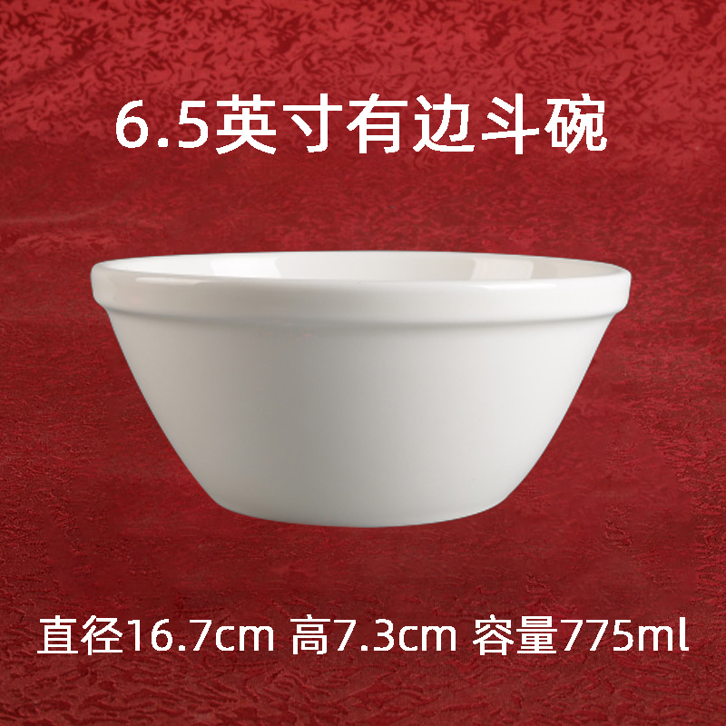 6.5英寸有边斗碗 唐山高骨瓷 无铅釉 异形碗 米饭碗 汤碗面碗陶瓷