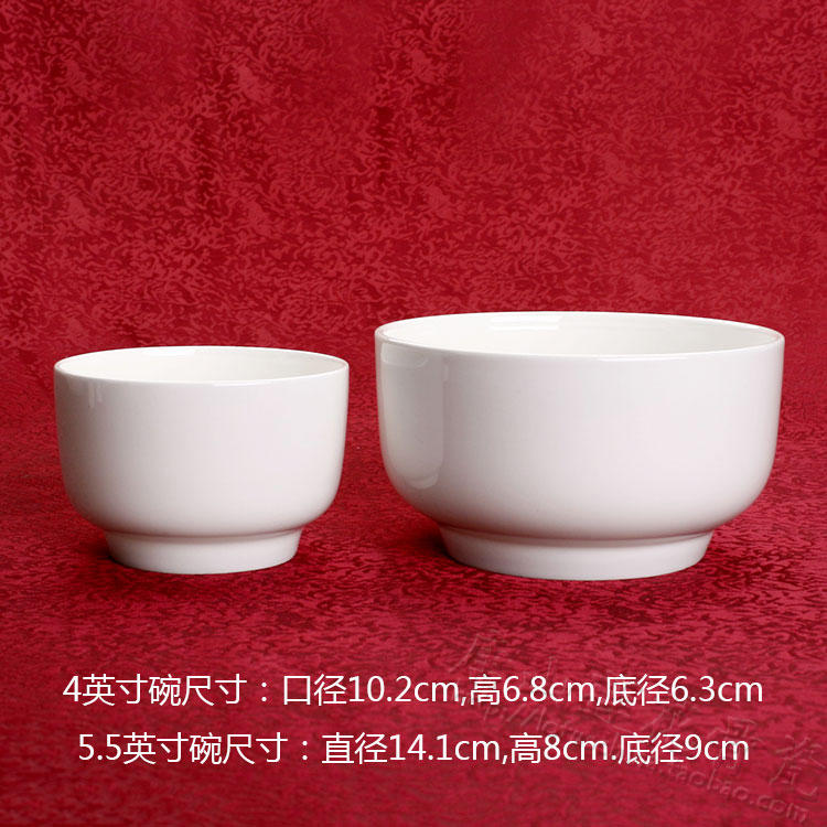 鲁玉直口碗4.5 5.5 7英寸纯白色 骨瓷汤碗 米饭碗 酒店餐具 陶瓷