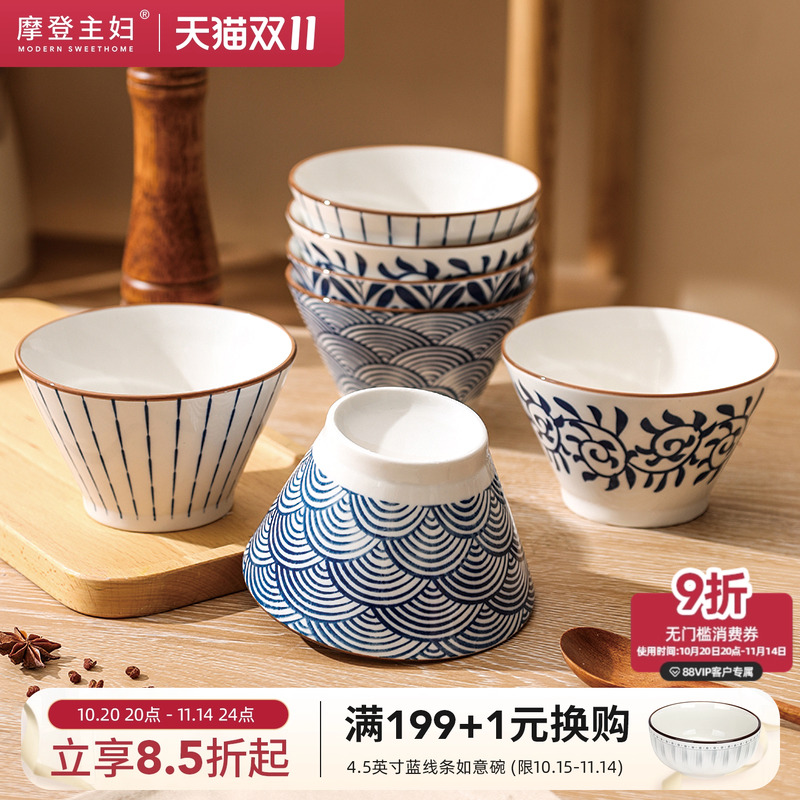 摩登主妇釉下彩日式米饭碗家用2025新款高颜值面碗个人专用斗笠碗