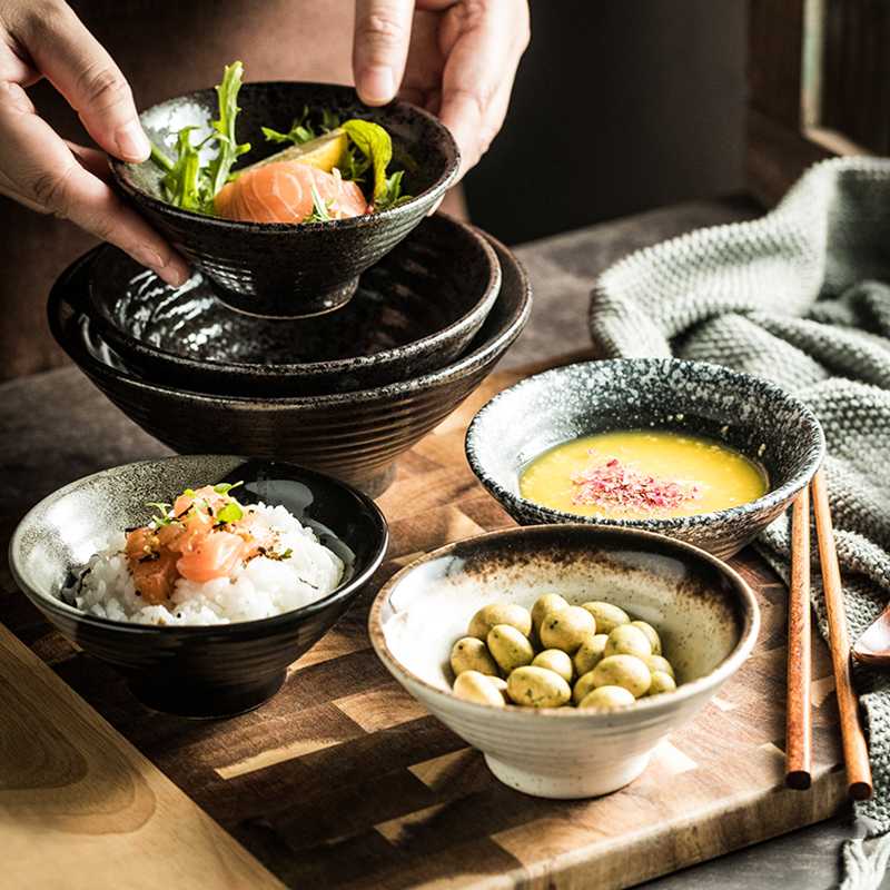 4.5寸6寸日式黑色磨砂带金边直口碗陶瓷碗 米饭碗面碗汤碗沙拉碗