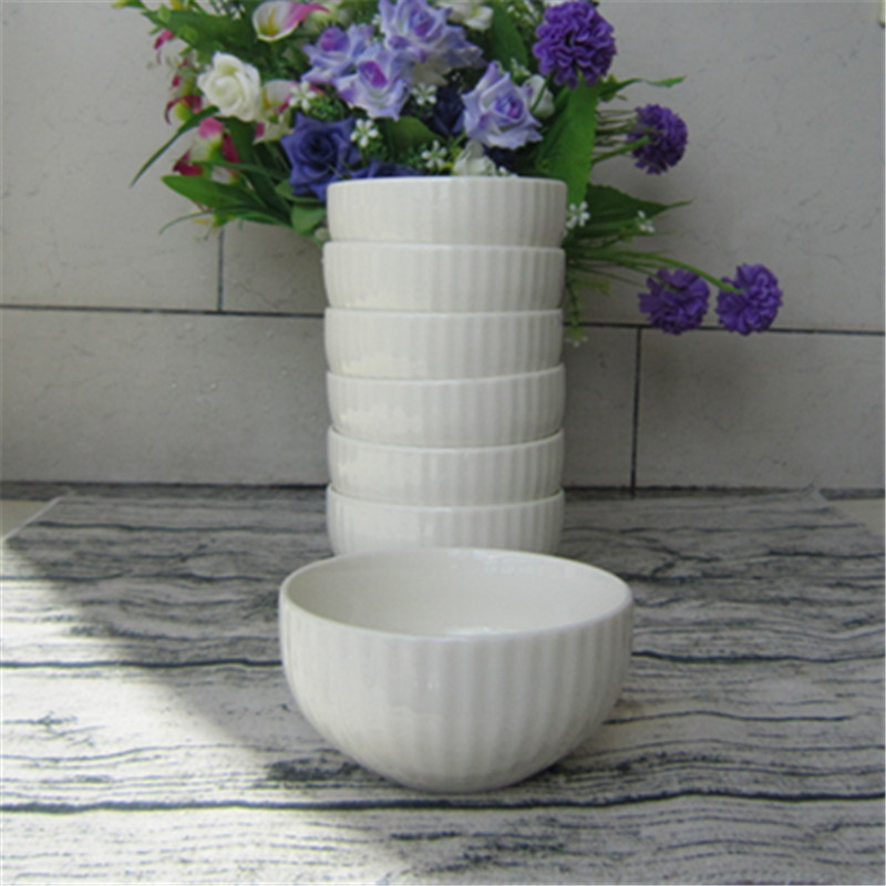 白色仿瓷内外罗纹碗 米饭碗 汤碗 餐饮馆用品碗 酒店用品碗家用