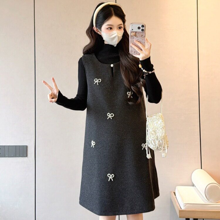 孕妇装秋装长袖打底衫秋季毛呢背心裙秋冬装两件套连衣裙套装裙子