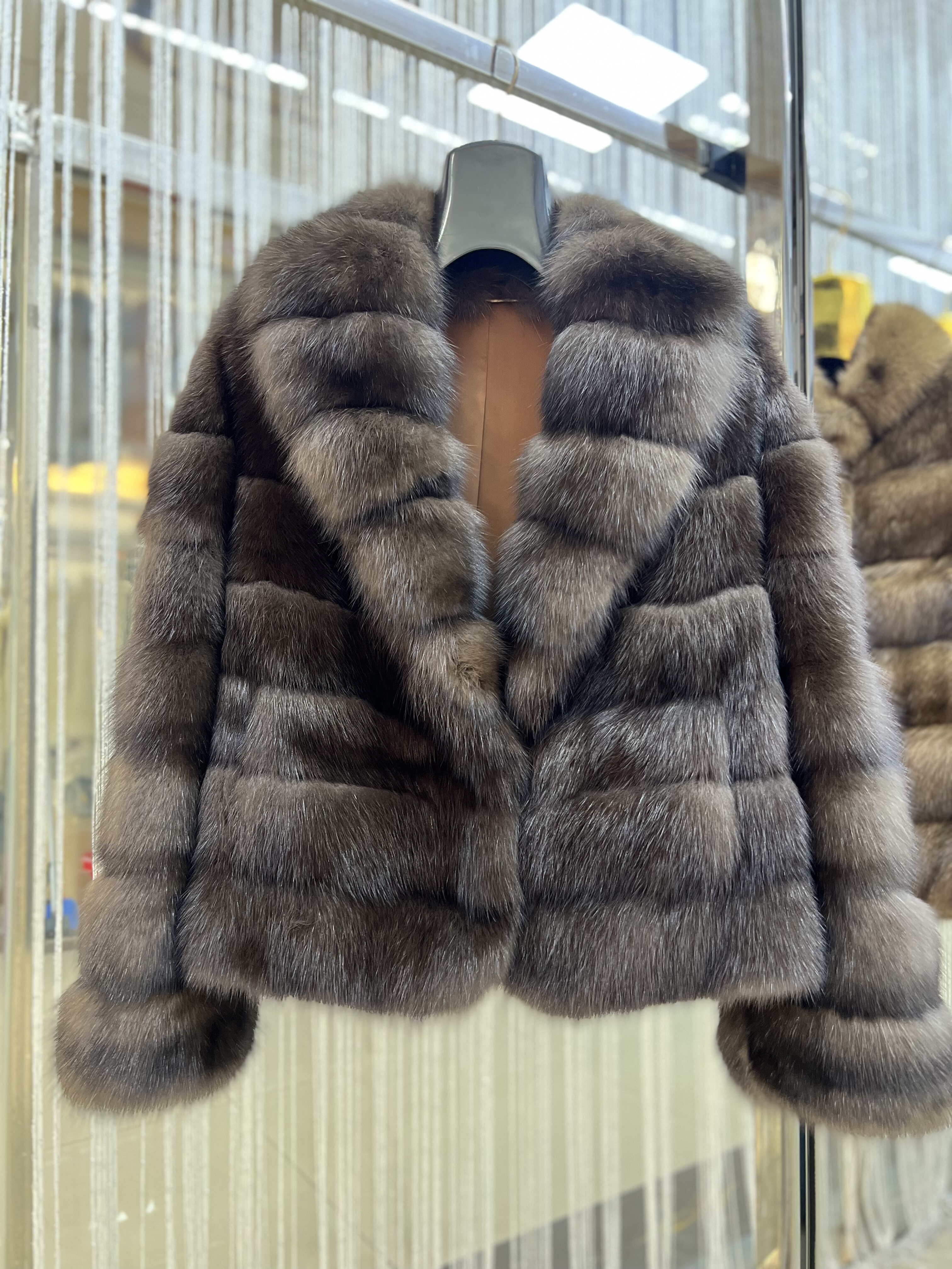 现货农夫色紫貂本色皮草外套女斜排西装青果领整貂皮大衣女款短款