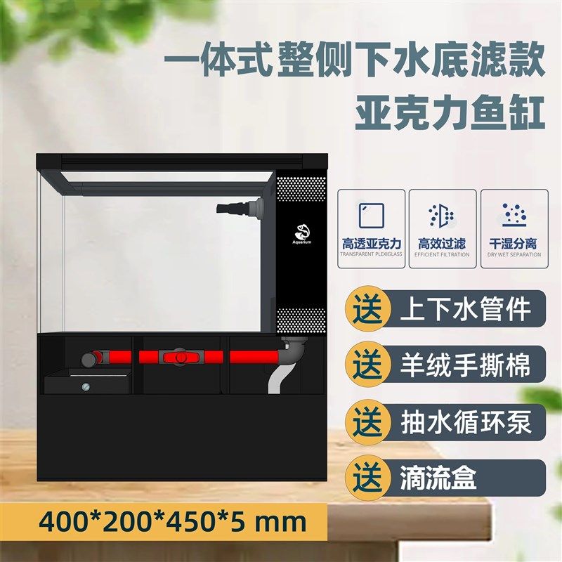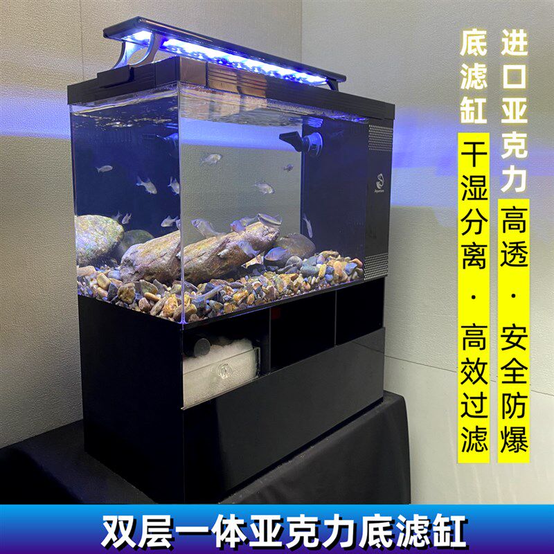 一体式底过滤鱼缸整侧下水超白亚克力小型桌面生态溪流一体机鱼缸