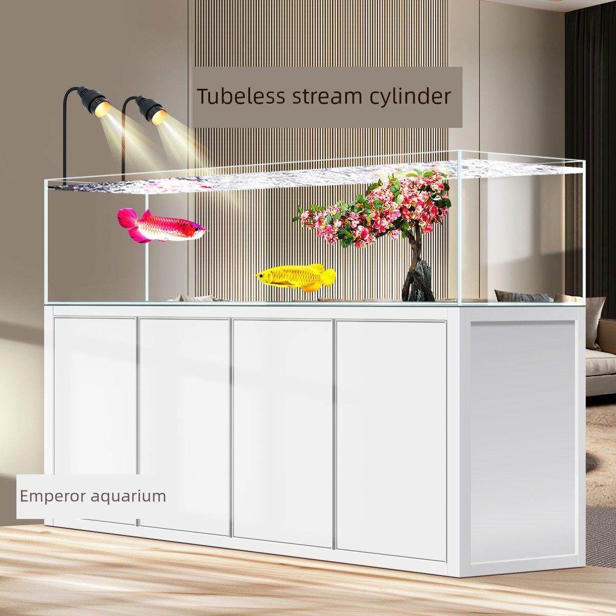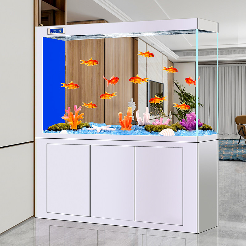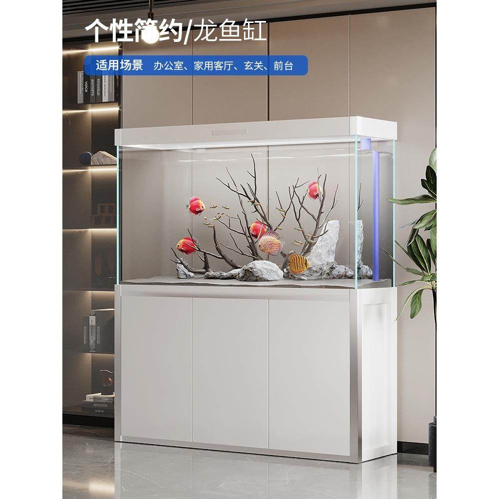 新款超白玻璃底过滤鱼缸智能生态水族箱中大型屏风家用客厅金鱼缸