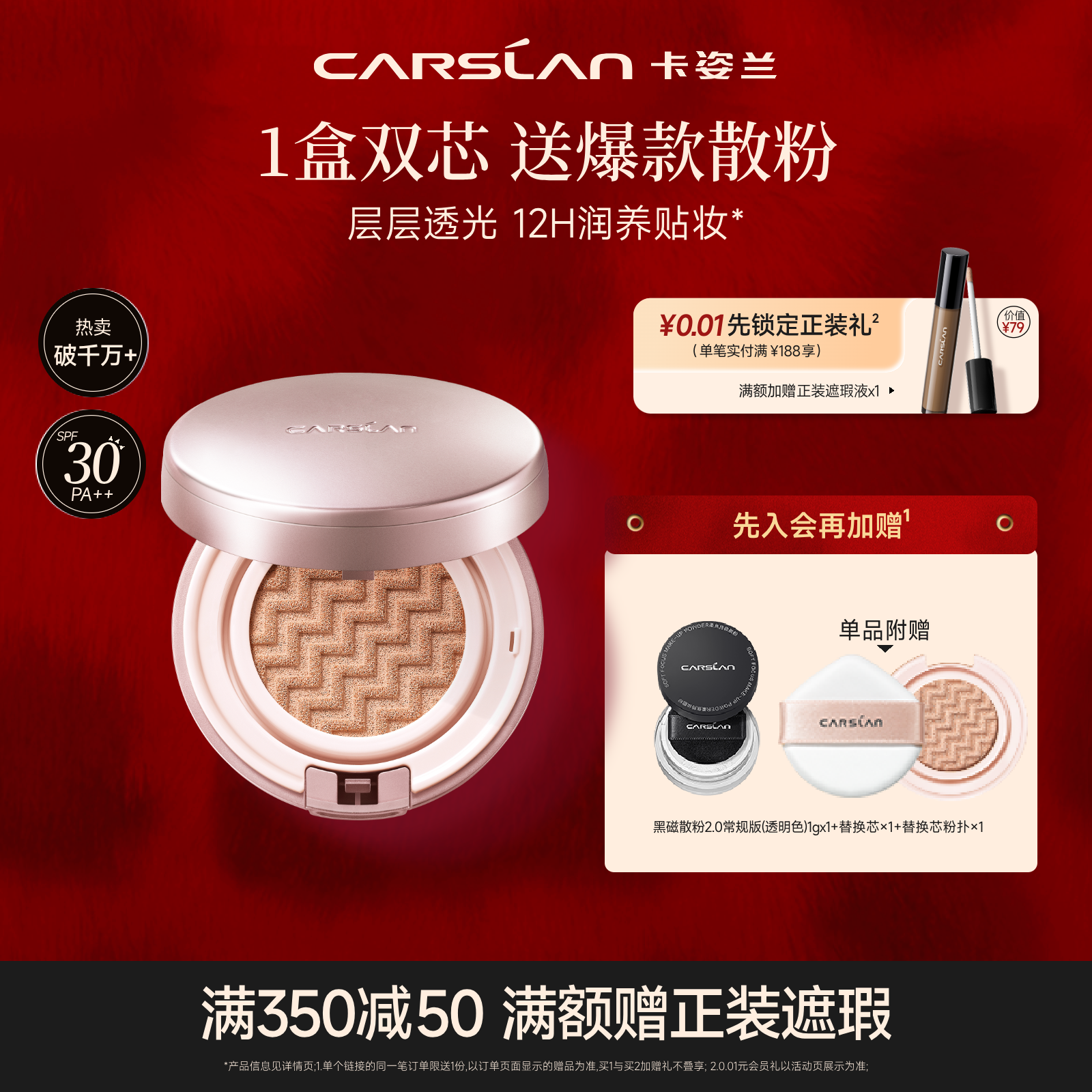 SALMON双层气垫CC霜油干皮粉底液遮瑕控持久不脱妆痘专用官方正品