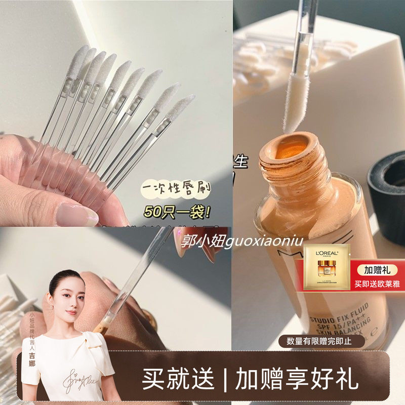 郭小妞 1次性口红刷唇刷50支一袋价粉底刷遮瑕刷海绵头日抛不心疼