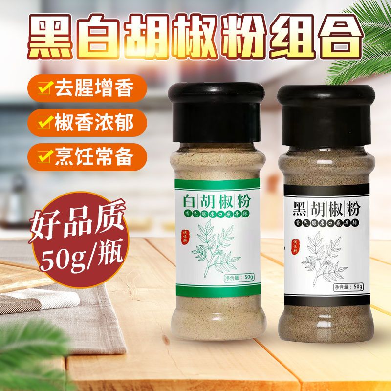 白胡椒粉50g家用调味品烧烤牛排西餐瓶装黑胡椒黑白胡椒粉组合装