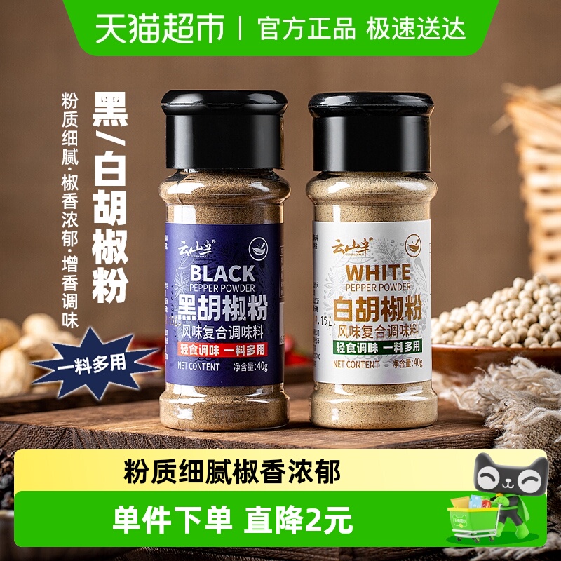 云山半香辛料黑胡椒粉白胡椒粉40g*2瓶家用牛排西餐烧烤煲汤调味
