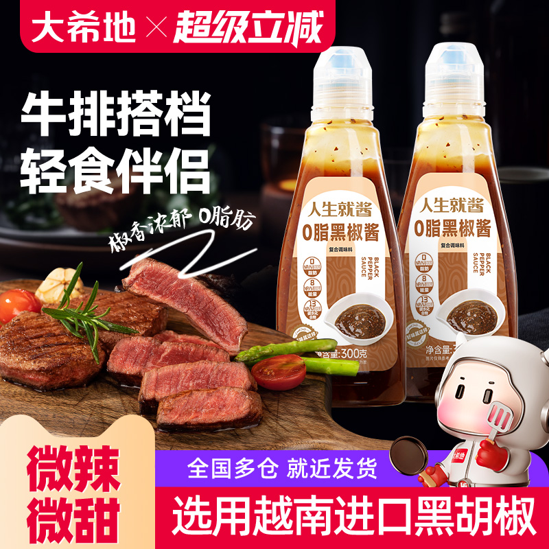 黑胡椒酱0脂肪黑椒汁家用牛排酱拌面意大利面酱烤肉酱低脂调味料