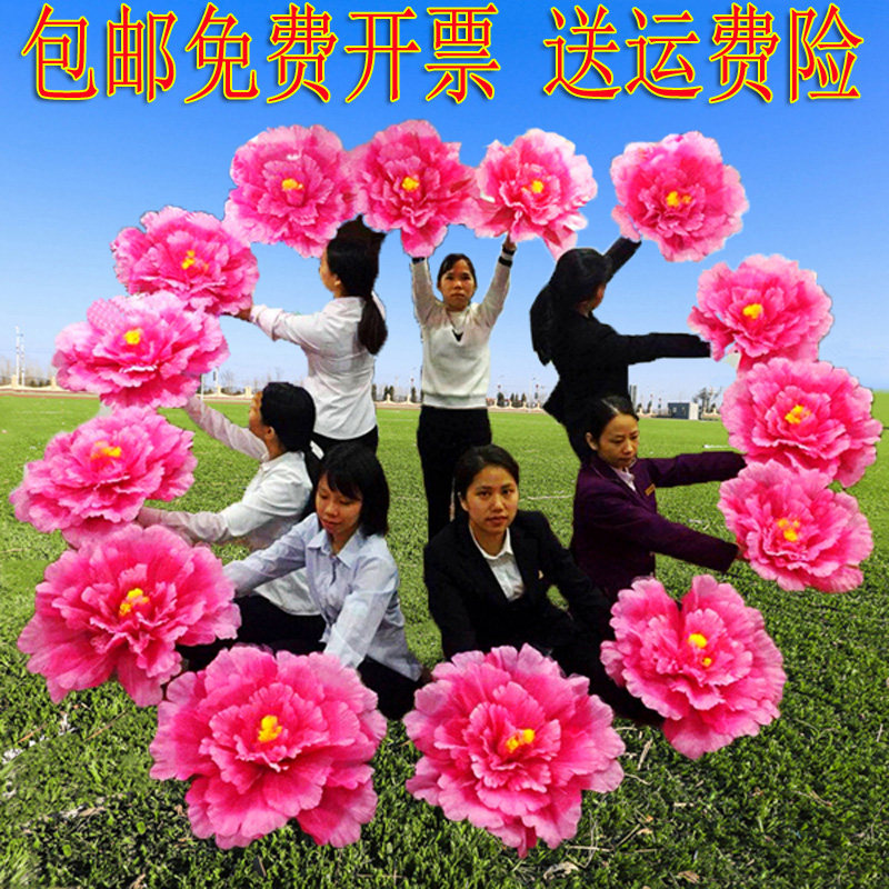 手拿花舞蹈道具牡丹大红花幼儿园运动会入场创意儿童演出跳舞手花