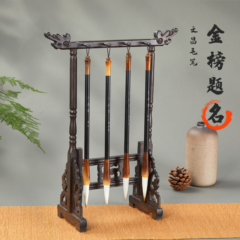 文昌毛笔初学套装毛笔挂毛笔架中式摆件实木简约现代学生文房四宝
