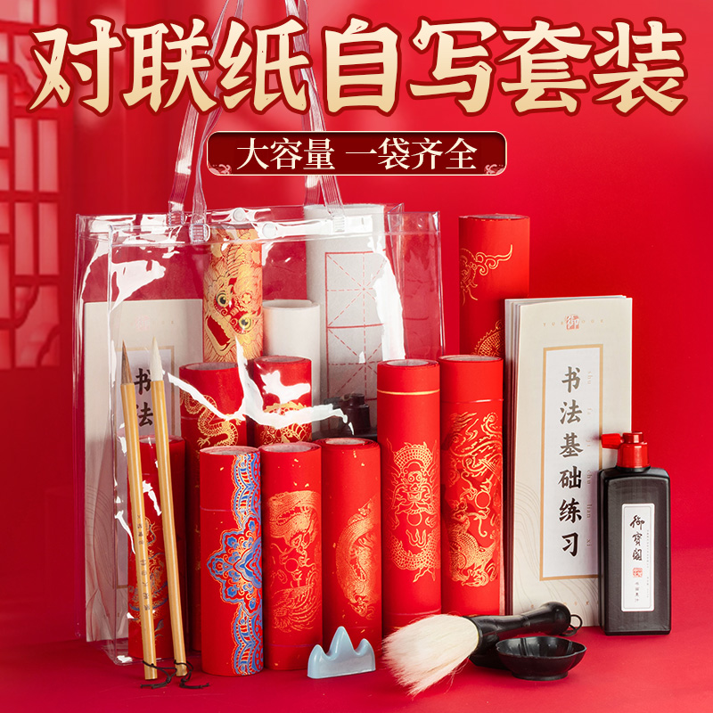2025年对联j纸工具套装对联纸福字自写毛笔初学套装小学生手写