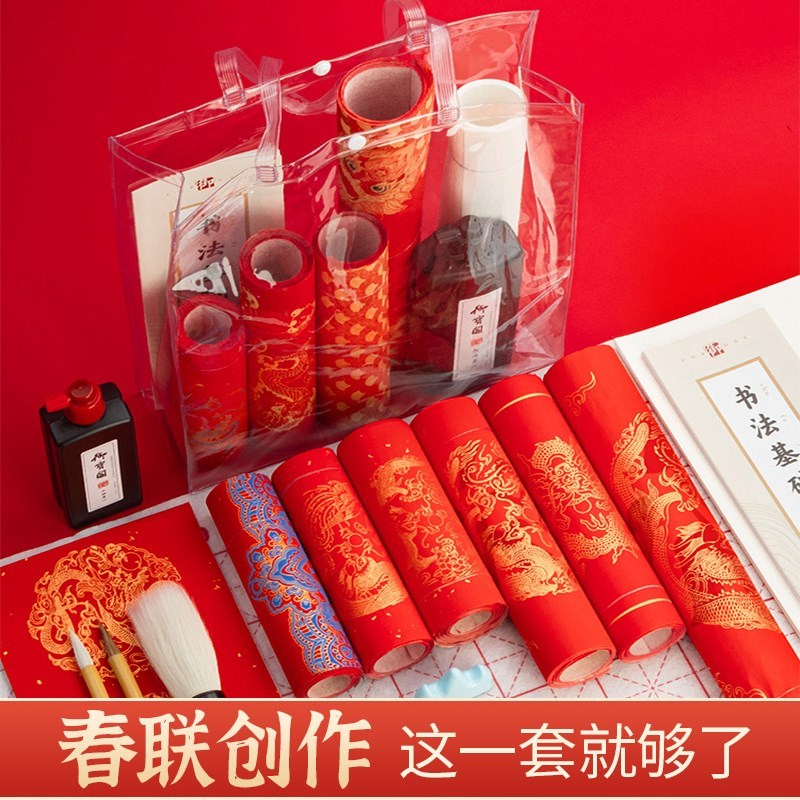 2024年对联纸工具套装对联纸福字自写毛笔初学套装小学生手写春联