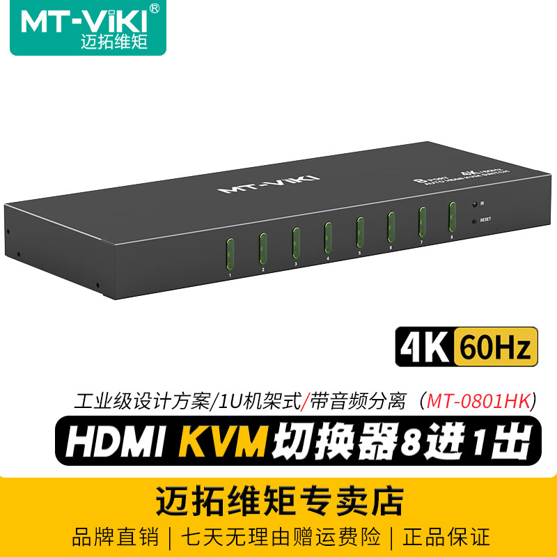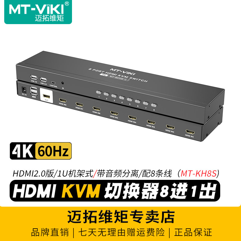 迈拓维矩 MT-KH8S 8口KVM切换器8进1出hdmi高清4K60Hz音频分离电脑监控主机服务器共享usb键盘鼠标显示器切屏
