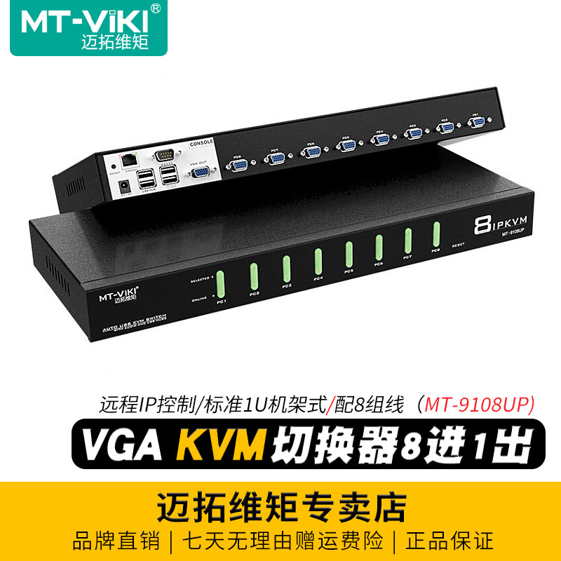 迈拓维矩 MT-9108UP 8口KVM切换器8进1出vga远程IP控制电脑主机服务器录像机usb键盘鼠标共享器显示器切屏器