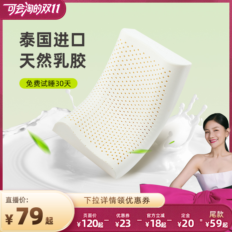 【胡可双11】jsy泰国进口天然乳胶枕头儿童枕头成人护颈按摩枕头