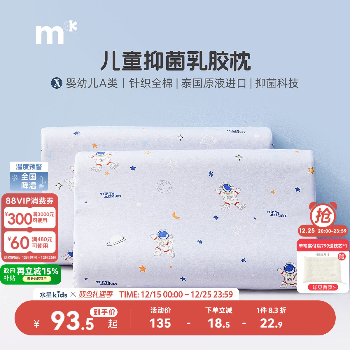 水星家纺儿童乳胶枕母婴A类抗菌进口乳胶枕芯枕头单只装25年新品