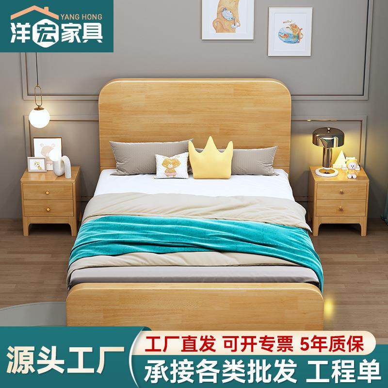 全实木床现代简约主卧双人床1.5米家用床橡木出租房1.2米单人床架