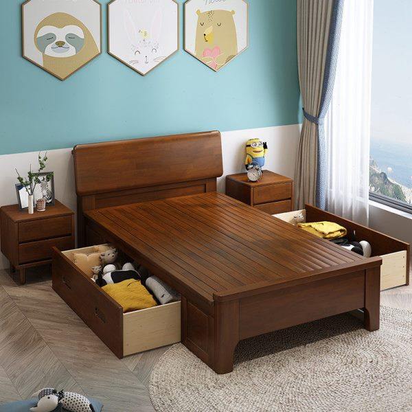 - 实木床 高箱