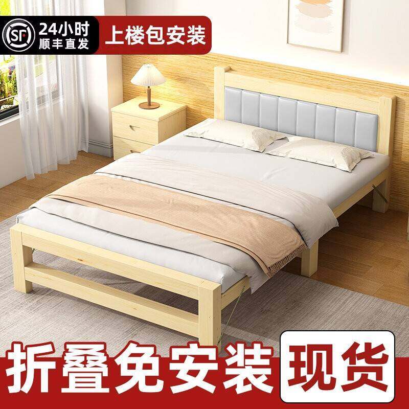 可折叠实木床1.5米加厚双人床1.8m经济型1.2家用单人床1m现代简约