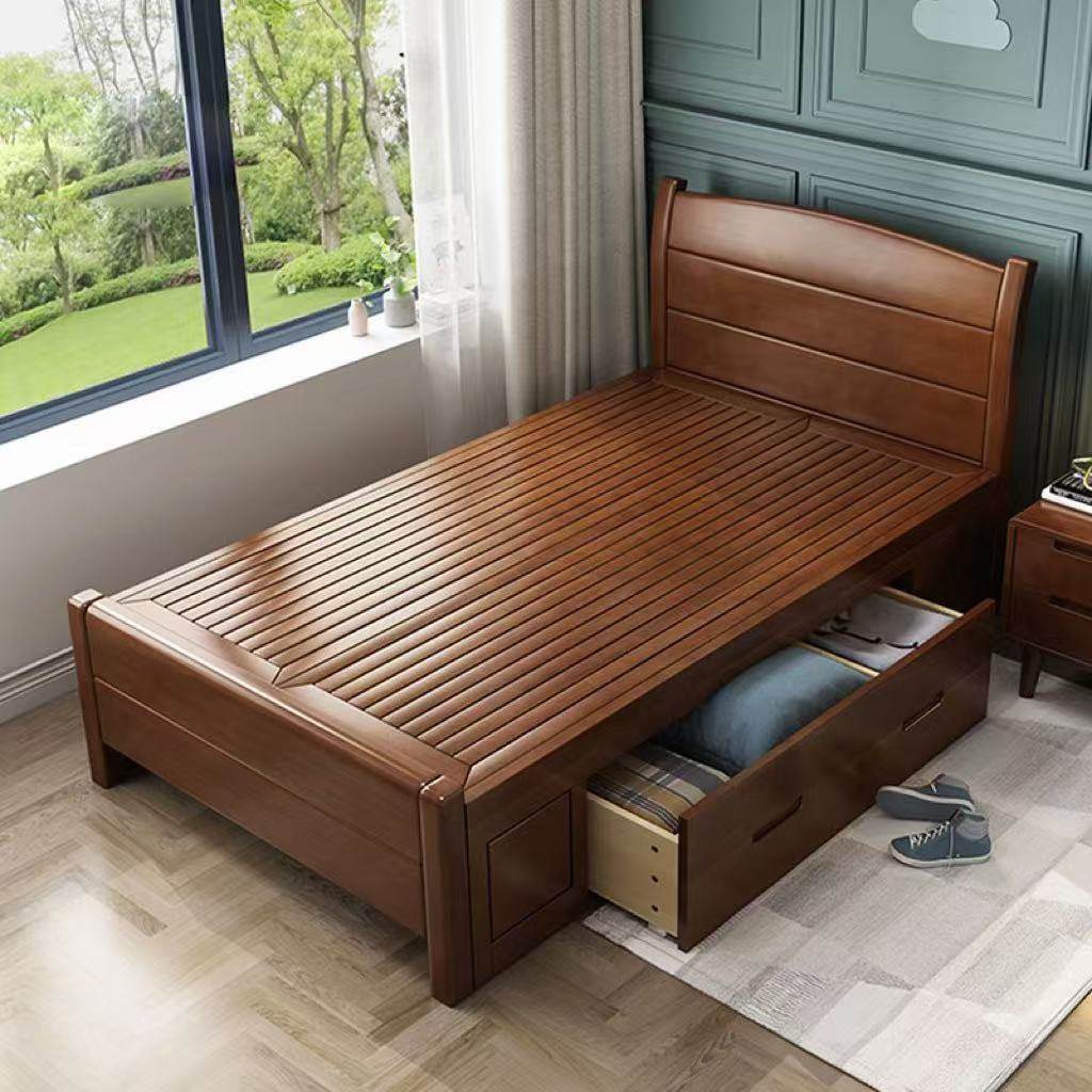 全实木床1米5双人床1米8储物家用经济型简约加厚1.2m出租房单人床