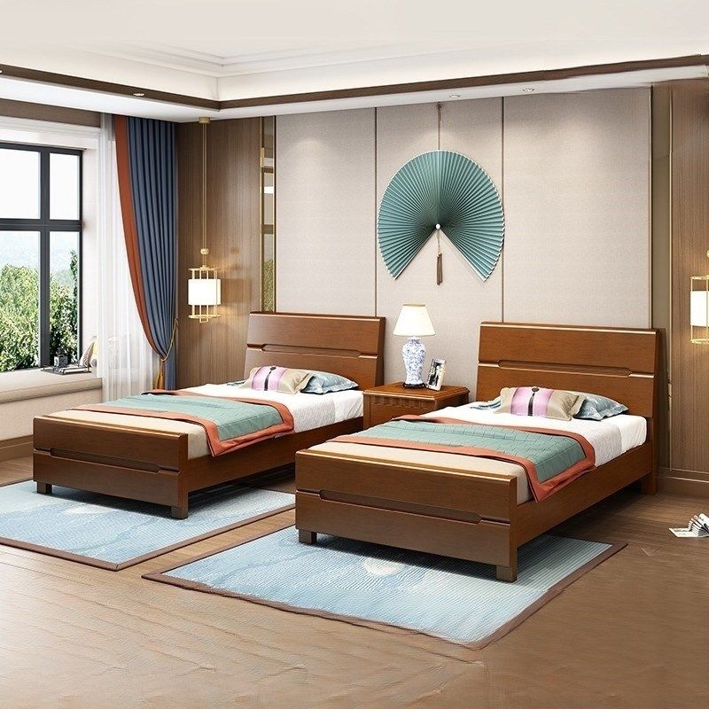 新中式实木床单人床1.2米1.5米经济型双人床宾馆民宿家用全实木床