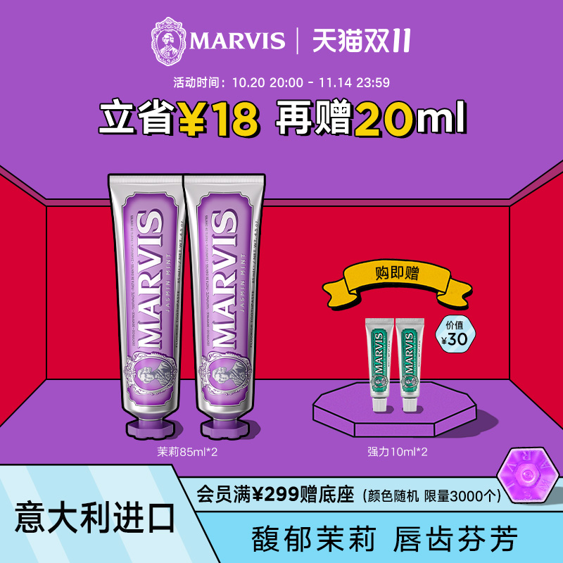 Marvis玛尔仕茉莉薄荷牙膏套装85ml*2清新口气牙龈护理意大利进口