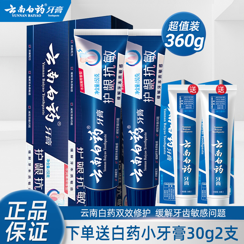 云南白药牙膏双效抗敏150g*2清洁口气抗敏感牙龈护理牙膏套装官方